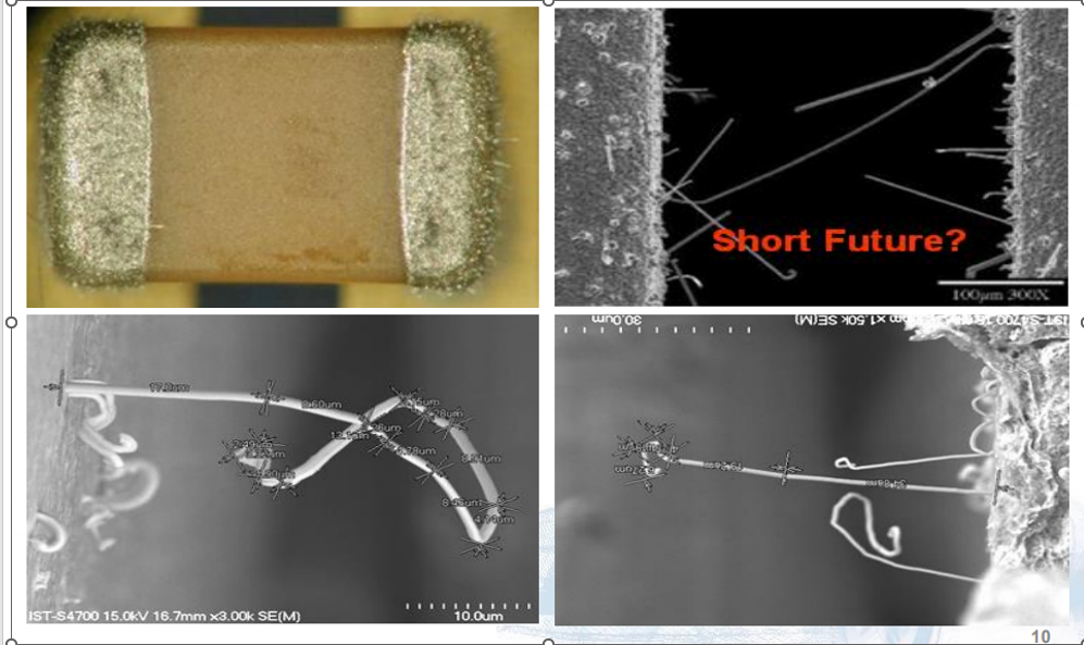 錫須是一種在純錫或錫合金鍍層表面自發生長的細長錫晶體。在電子電路中,錫須會引起短路,降低電子器件的可靠性,甚至導致電子器件的失效或失效。由于錫晶須通常在電鍍幾年甚至幾十年后才開始生長,這將對產品的可靠性造成很大的潛在危害。
