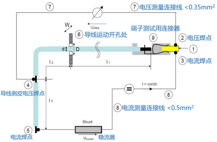 測試目的是測量端子和導線連接位置的電阻。