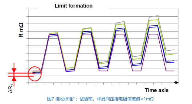 — 壓接電阻的測量值,以下數值必須體現在表格中,如初始電阻值,結束電阻值,電阻*大值,*小值,平均值等;